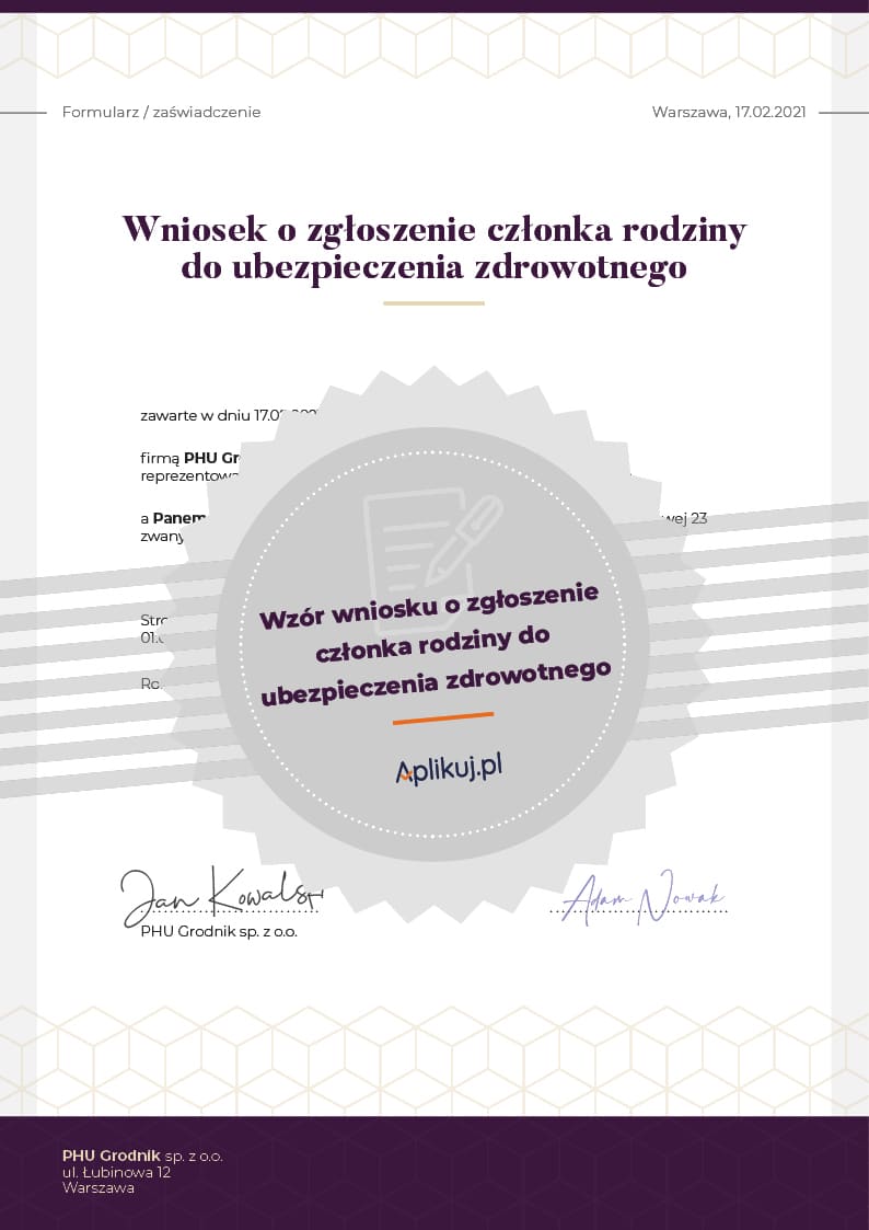 Wzór wniosku o zgłoszenie członka rodziny do ubezpieczenia