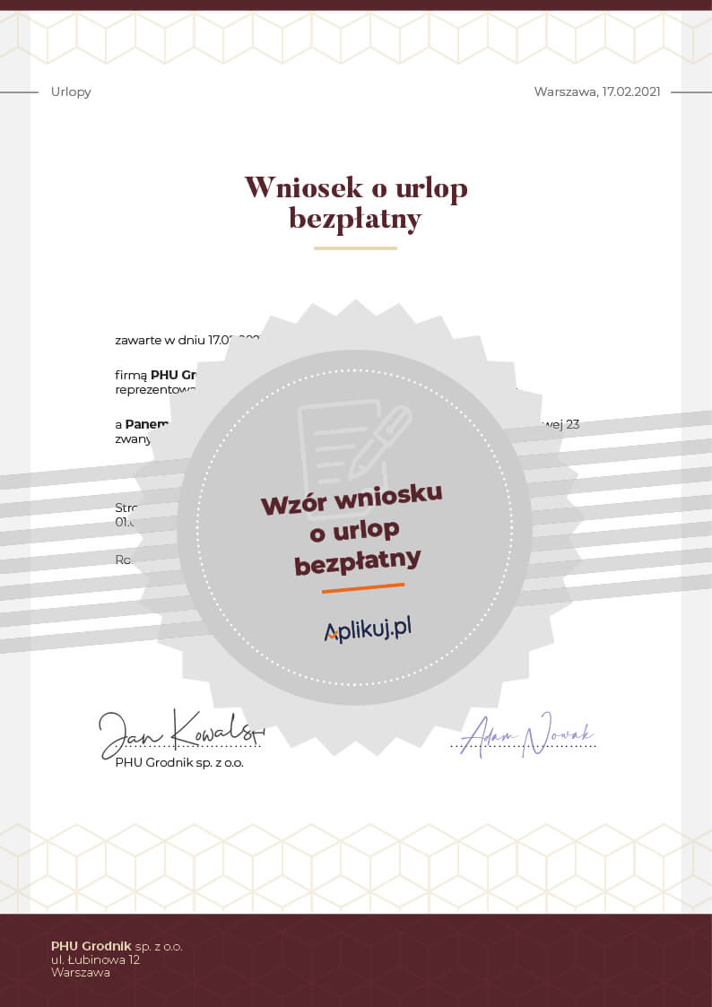 Wzór wniosku o udzielenie urlopu bezpłatnego