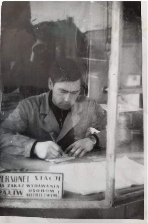 Praca na stacji paliw CPN w Kożuchowie w 1976 r. Razem z bratem byłem wtedy ajentem i zarazem sprzedawcą na tej stacji. Jak widać, królowała wtedy Etylina 78. A według informacji przy kasie "personel stacji miał zakaz wydawania paliwa osobom nietrzeźwym". To były wspaniałe czasy!