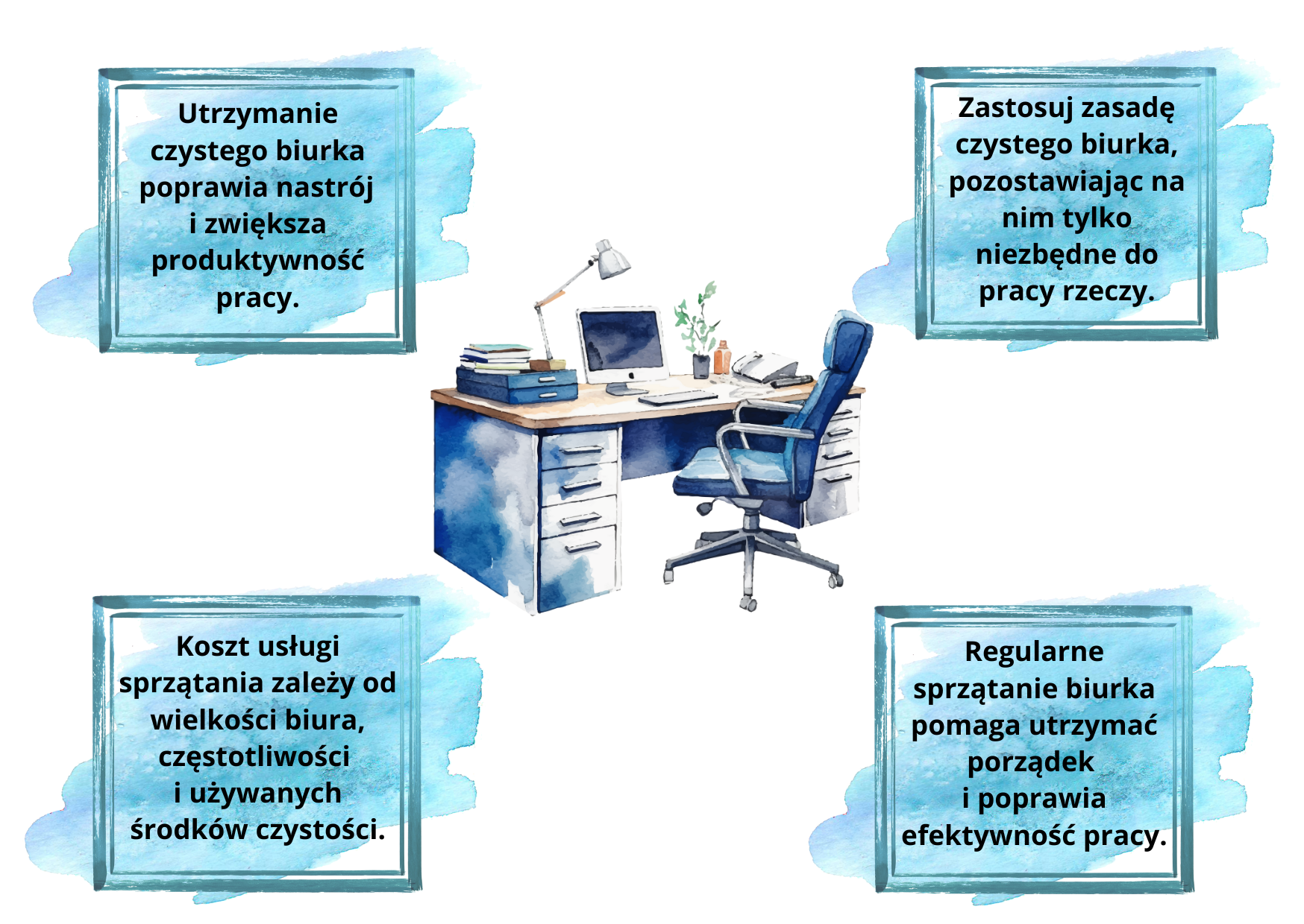 Wiele badań pokazuje, że czystość biurka wpływa na jakość pracy. Chaos na biurku może powodować stres, rozproszenie uwagi i utrudniać skupienie się na wykonywanych zadaniach. Dla osoby wykonującej sprzątanie, praca z zabałaganionym stanowiskiem pracy może być dużo trudniejsza. Trzeba uważać na rozmaite drobiazgi, czy na to, aby przez pomyłkę nie wyrzucić skrawka papieru, na którym zapisany jest ważny numer telefonu. Dlatego tak ważne jest utrzymanie porządku na biurku, niezależnie od tego, czy sprzątasz sam, czy korzystasz z usług firm sprzątających.