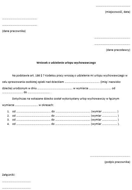 - określenie czasu trwania urlopu wychowawczego na podane dziecko;
