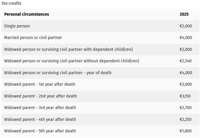 Źródło:https://www.revenue.ie/en/personal-tax-credits-reliefs-and-exemptions/marital-and-civil-status/personal-tax-credit/index.aspx