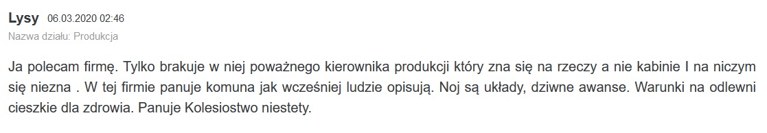 Na temat Impexmetal S.A. również można znaleźć informacje w sieci, choć trzeba przyznać, że rzeczowych opinii nie ma zbyt wiele. Przede wszystkim w temacie Impexmetal S.A. Aluminium Konin można wyczytać, że zarobki wypadają dość przeciętnie i to w porównaniu do innych spółek należących do Impexmetal S.A. Opinie o zarobkach są jednak zróżnicowane i z jednej strony słychać, że te są nie najlepsze, a z drugiej zaś, że w regionie nie można liczyć na wiele lepszych opcji.