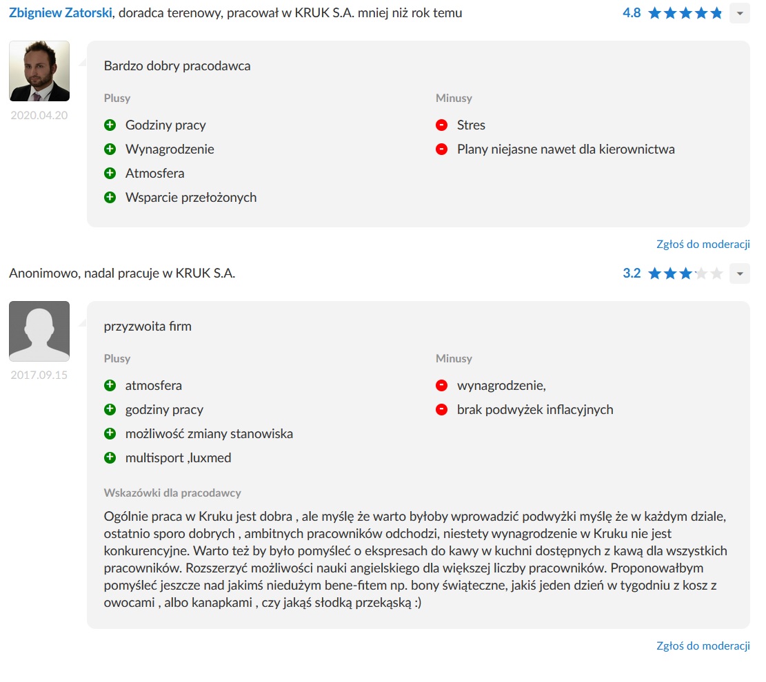 Cały artykuł faktycznie jest o W. KRUK, który działa w branży jubilerskiej... Jednak same opinie o pracy, które zostały załączone na zdjęciach dotyczą już KRUK S.A., a to jest całkiem inna branża, ponieważ to firma windykacyjna.