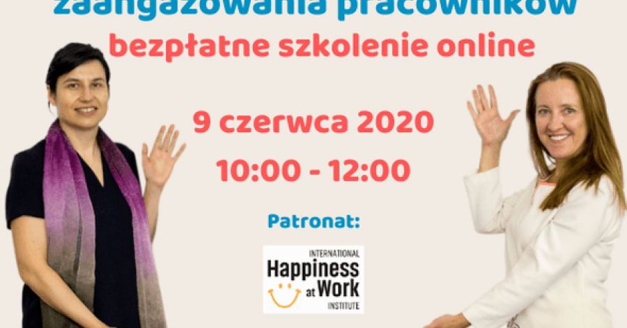 We wtorek 9 czerwca bezpłatne szkolenie online z International Happiness at Work Institute, podczas którego dowiesz się, co możesz zrobić już dziś, aby poprawić atmosferę w pracy.